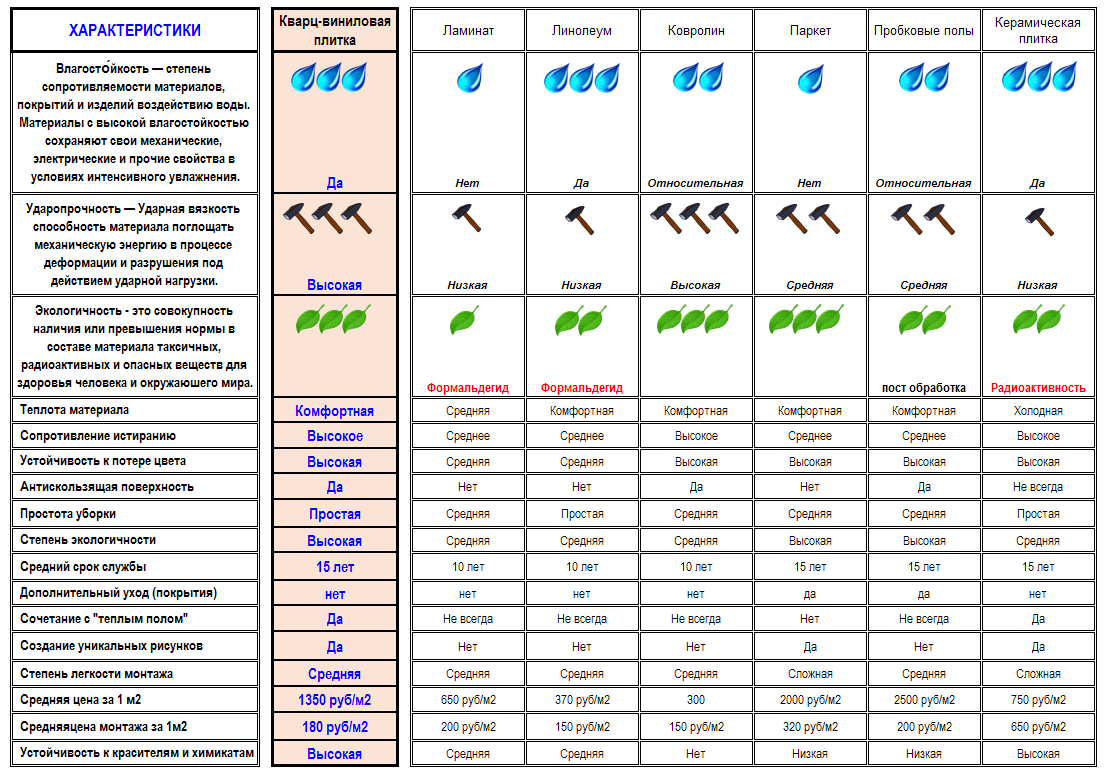 СРАВНИТЕЛЬНАЯ ТАБЛИЦА